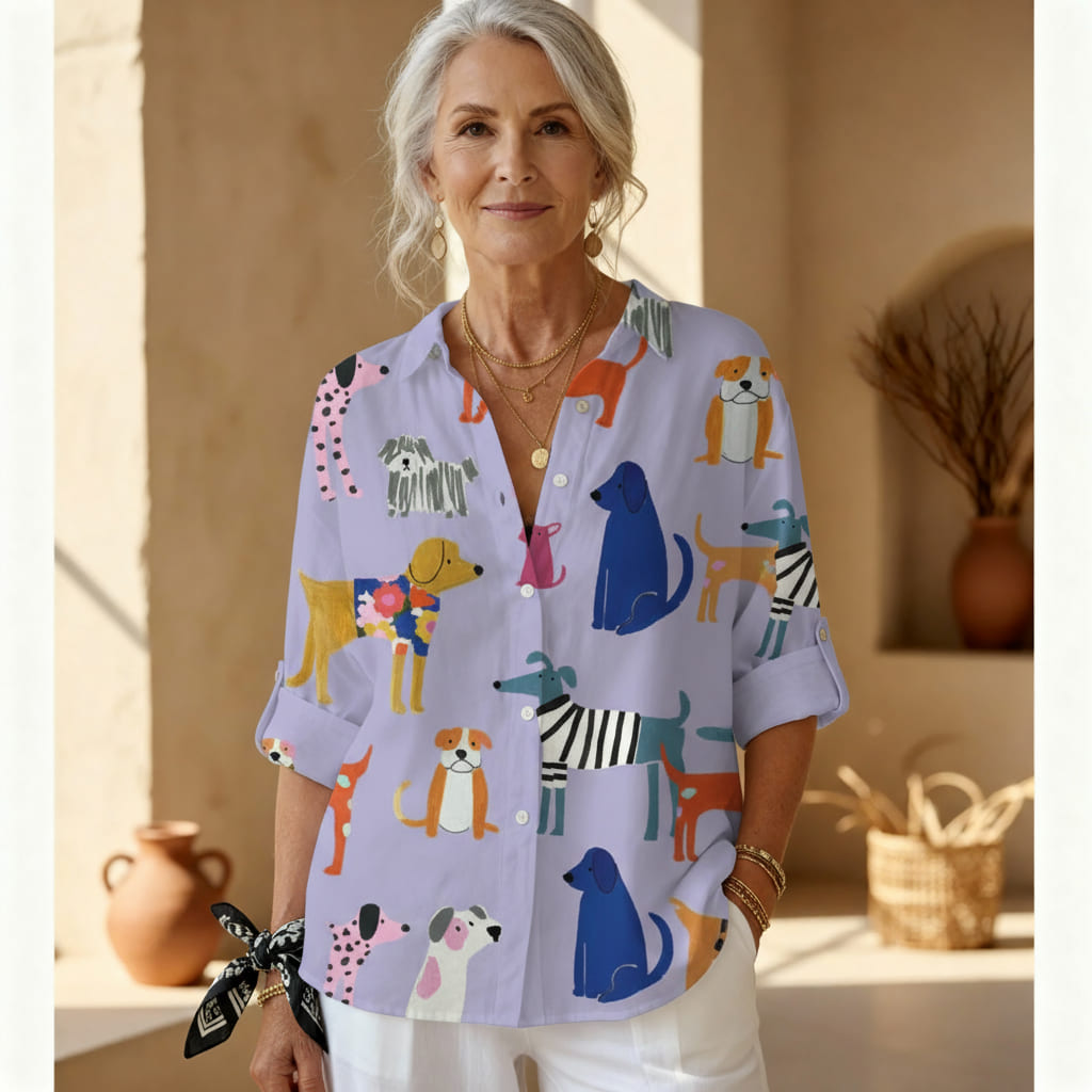 פלורנס - בלוזת כלבים משחקיים מלאה באופי, עם איורים צבעוניים של כלבים על בסיס סגלגל רך. עם העיצוב הקליל והאומנותי שלה, הבלוזה הזו מושלמת לאוהבי כלבים או לכל מי שרוצה להביא נגיעה של כיף ללבוש שלהם — אידיאלית ליציאות מזדמנות, דייטים לקפה, או פשוט להאיר את היום שלך.